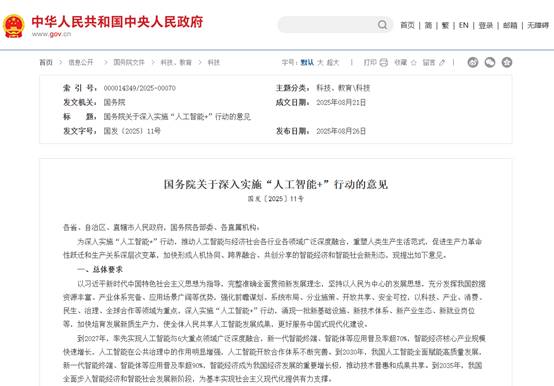 国务院近期印发的《关于深入实施“人工智能+”行动的意见》,将“人工智能+”治理能力列为重点发展方向,明确提出应推动人工智能在政务服务和公共安全等领域的深度融合,进一步提升社会治理的智能化水平。